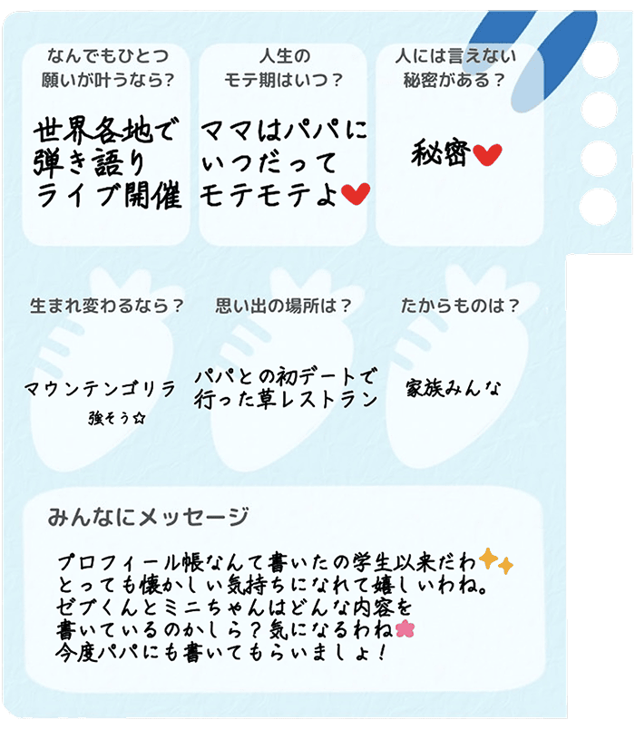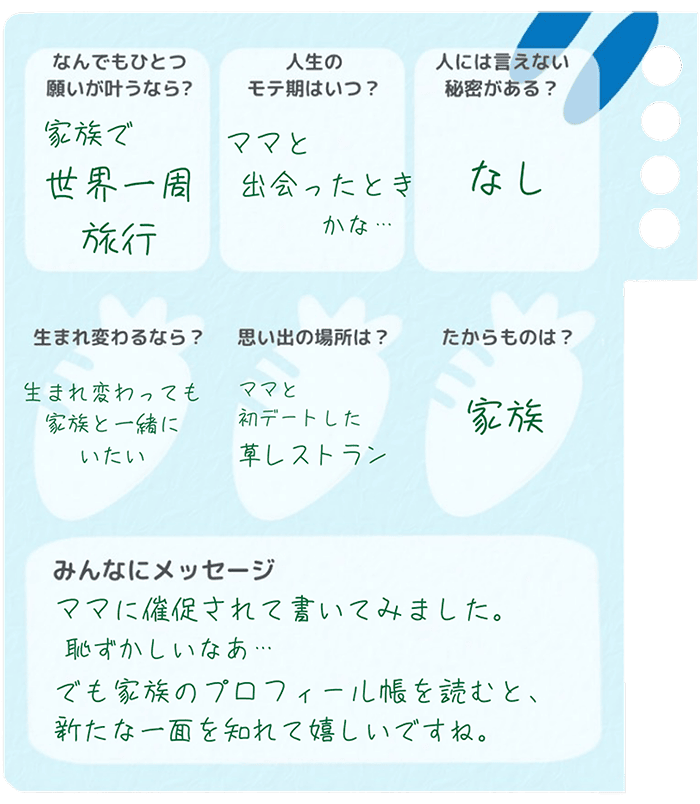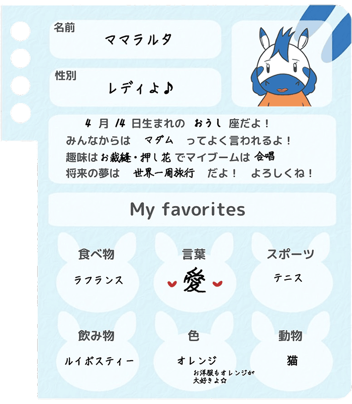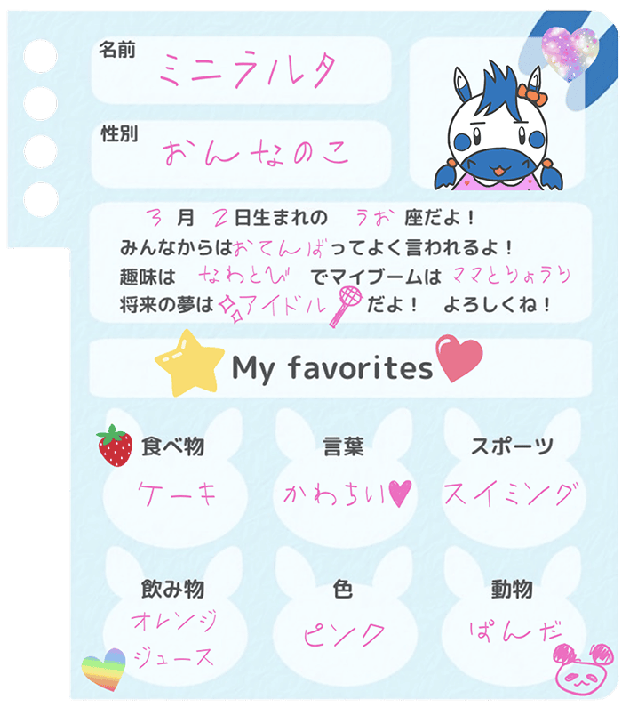 お父さん、お母さん、妹のミニラルタと暮らしていて、
